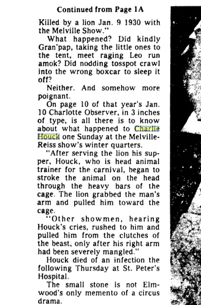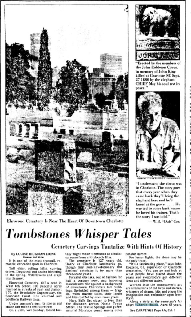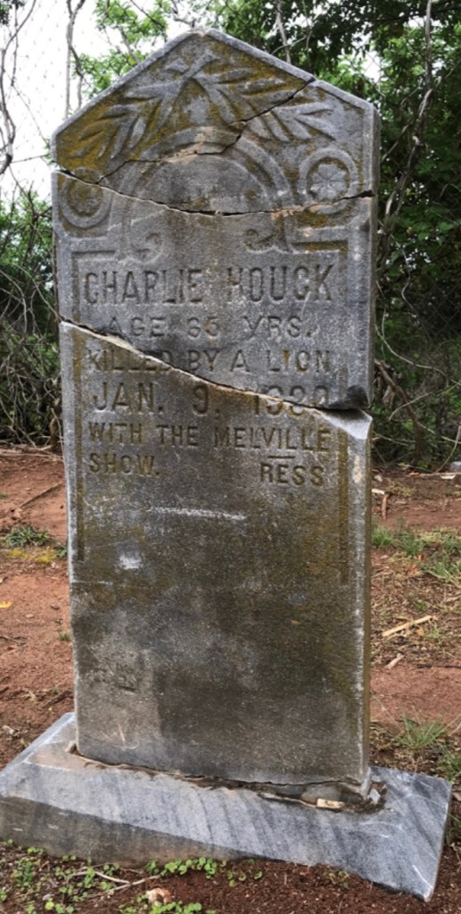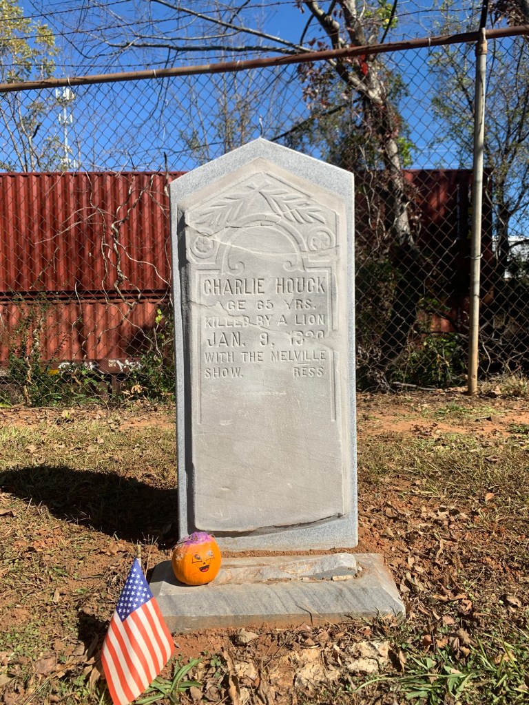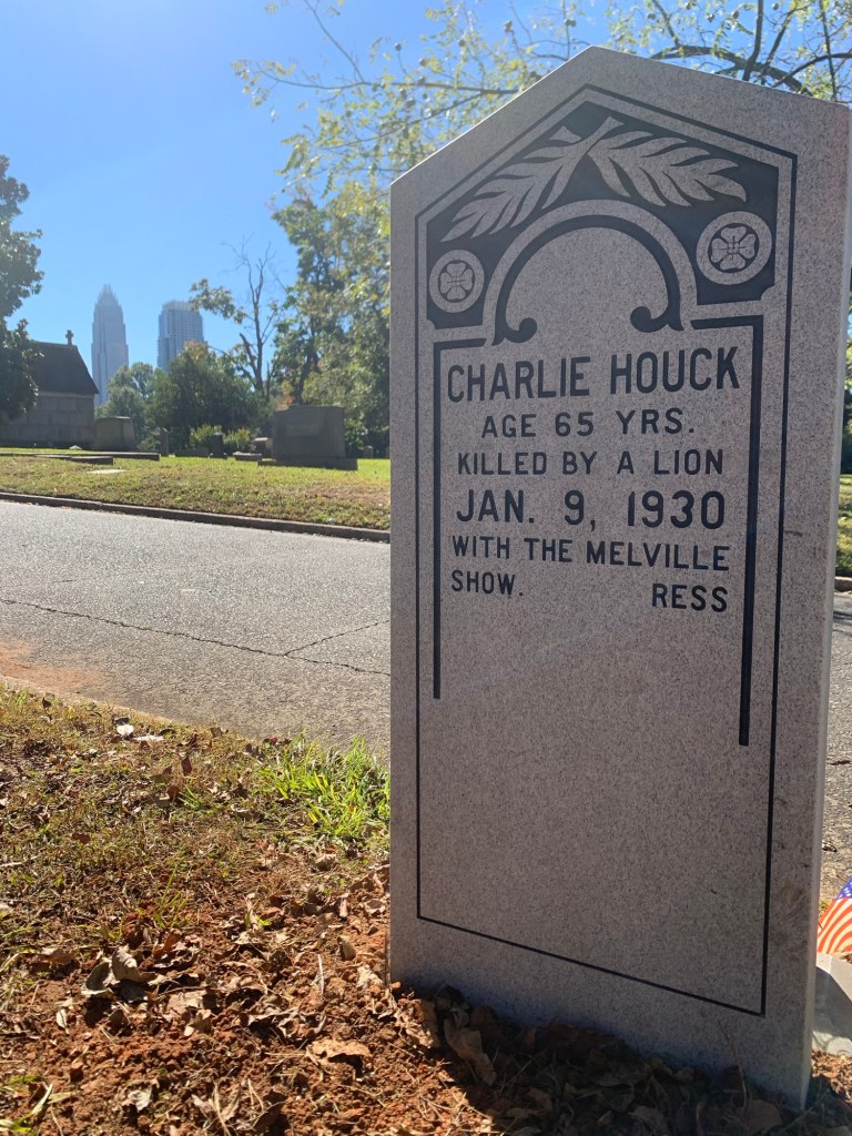 So the next time you’re at Elmwood cemetery you can point out the headstone of Charlie Houck… who was killed by a Lion in Charlotte North Carolina…