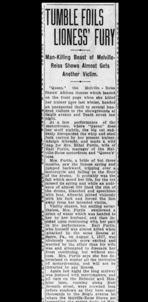 The Week of January 9th 1930 the Melville-Reiss Carnival was in Charlotte, North Carolina. One of their main attractions was “Leo the Lion” who was trained by Charlie Houck.